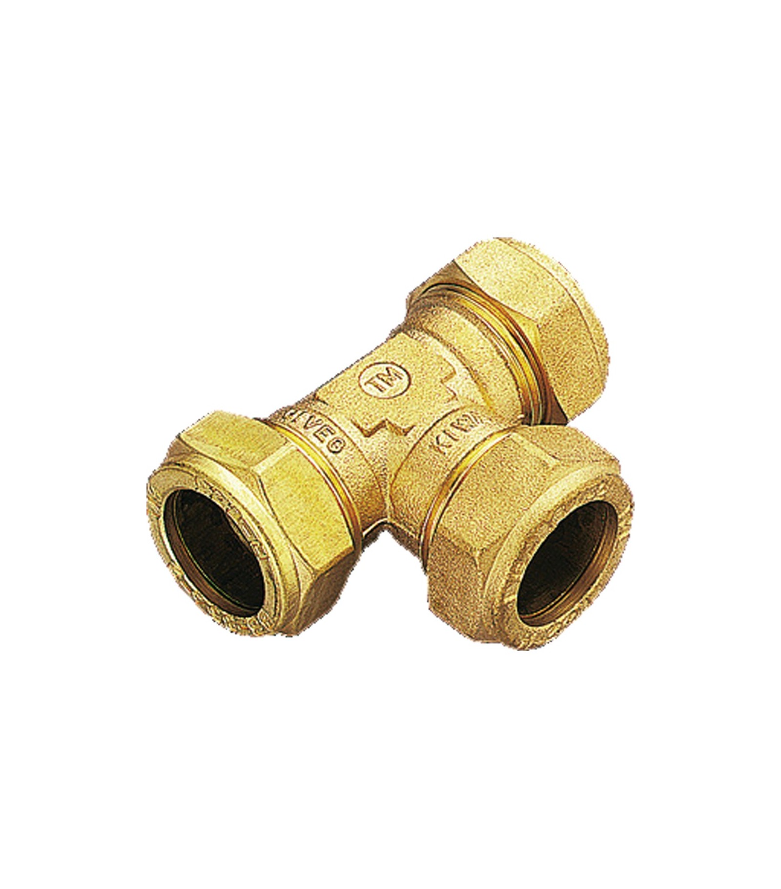 TEE CON 3 DADI A COMPRESSIONE CON OGIVA IN OTTONE PER TUBO RAME TIEMME D.22 x D.22 x D.22
