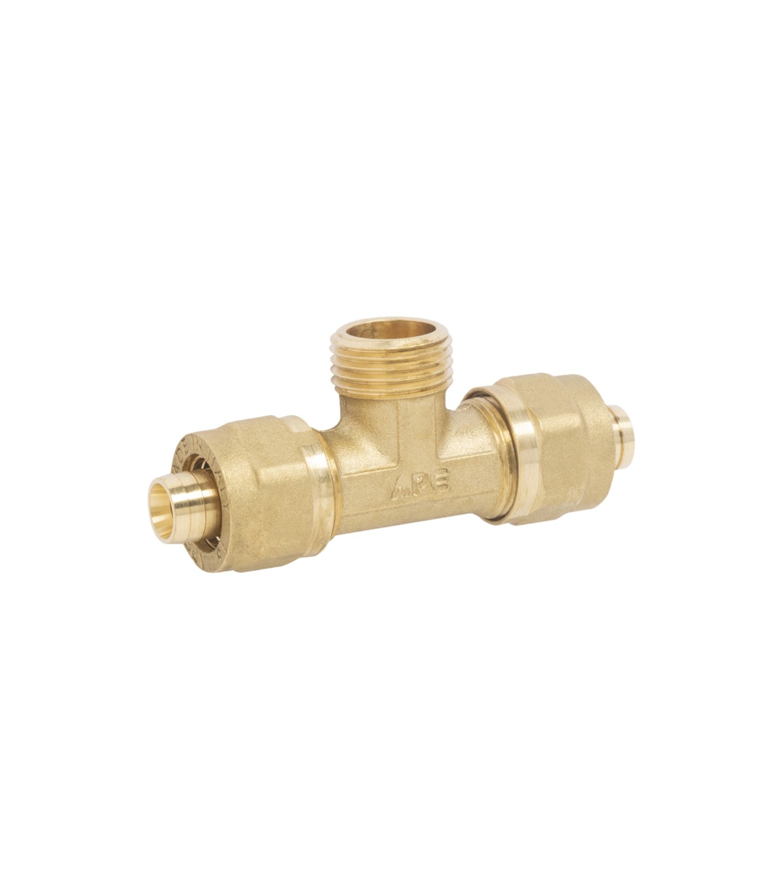 TEE MASCHIO A COMPRESSIONE PER TUBO MULTISTRATO APE D.20 (2,0) x 3/4M x D.20 (2,0)