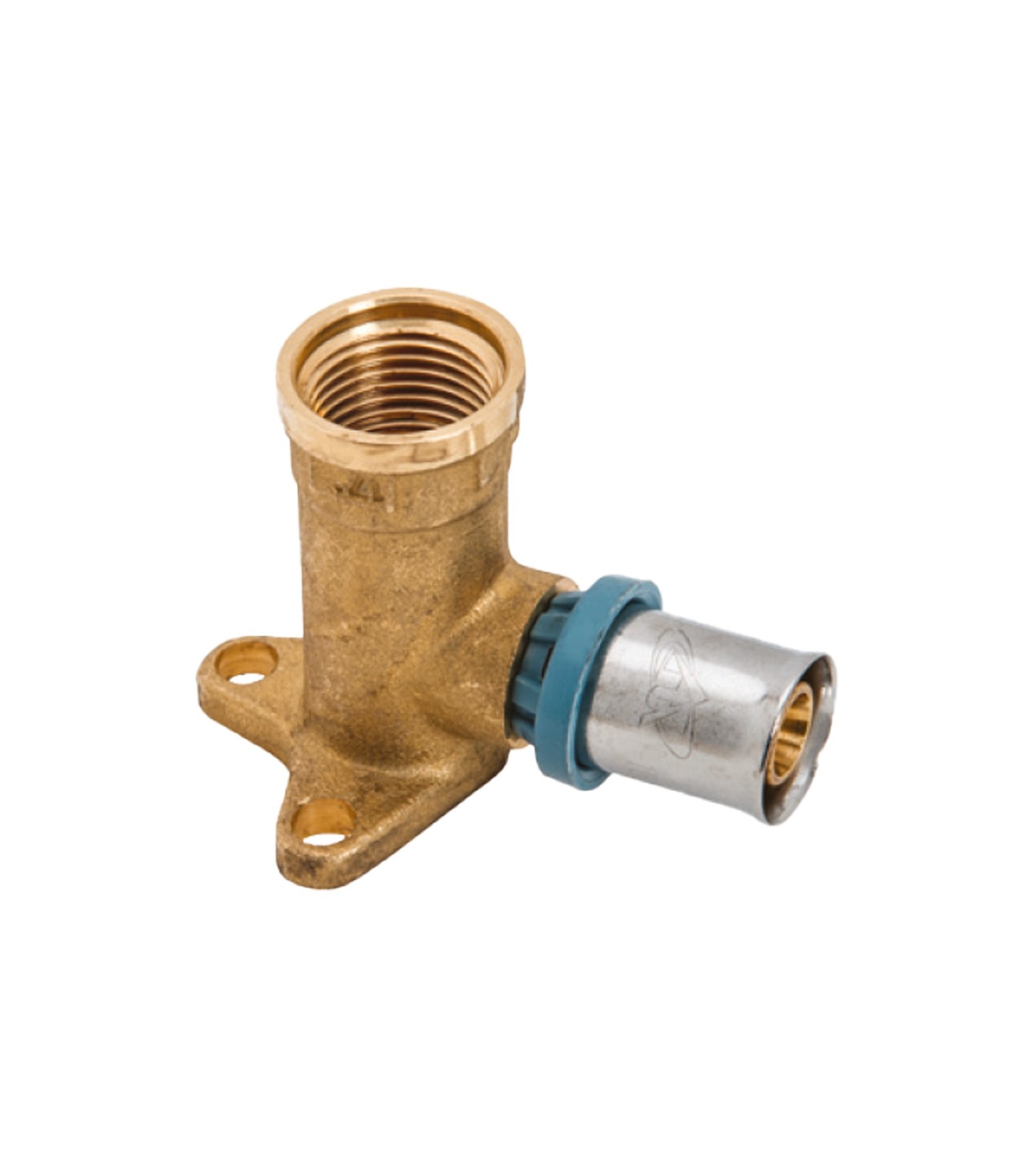 GOMITO FEMMINA FLANGIATO A PRESSARE PER TUBO MULTISTRATO UNIDELTA D.16 x 1/2 - H.53 mm