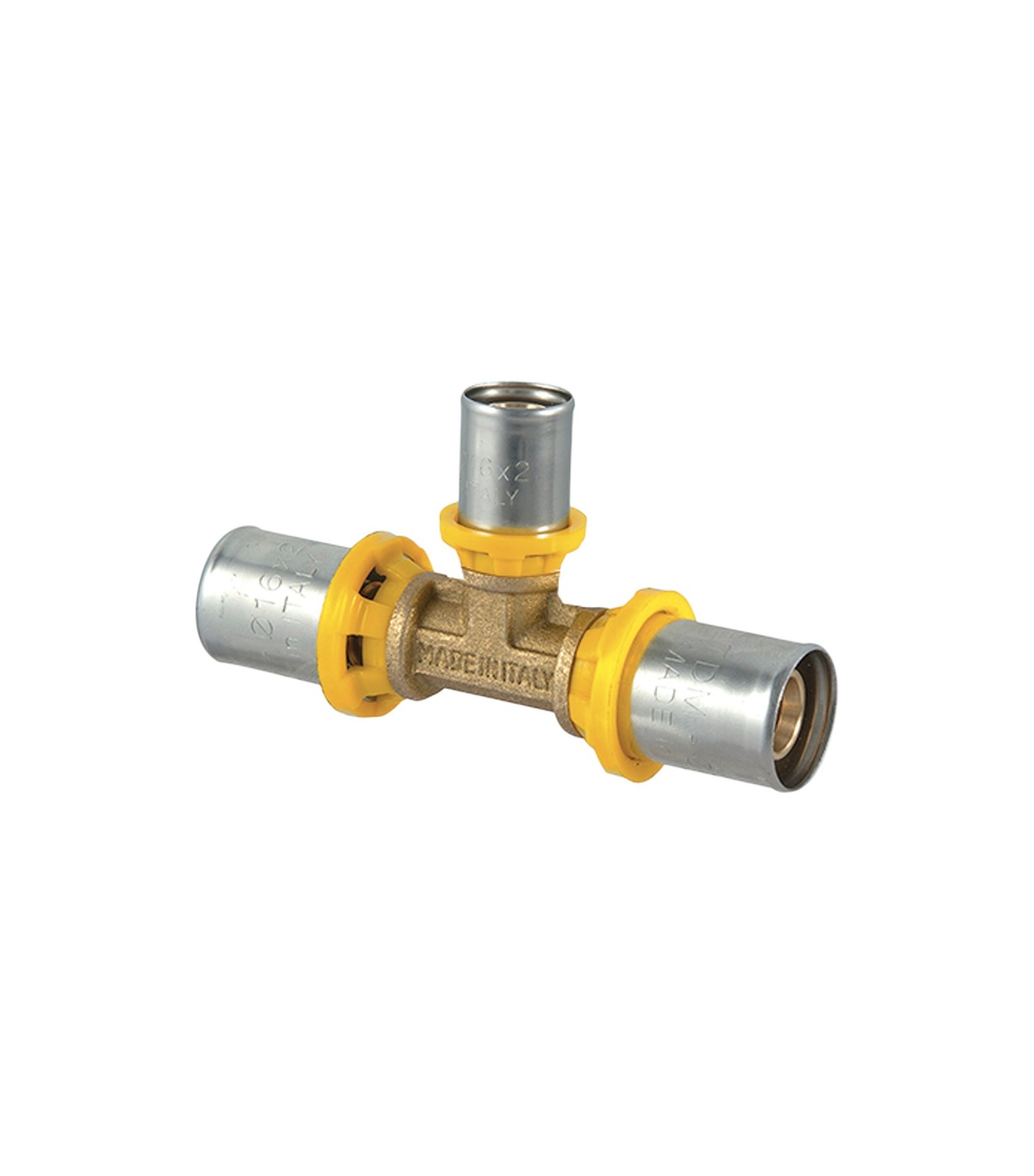 TEE RIDOTTO A PRESSARE PER TUBO MULTISTRATO ACQUA E GAS TDM D.26 x D.32 x 26 mm
