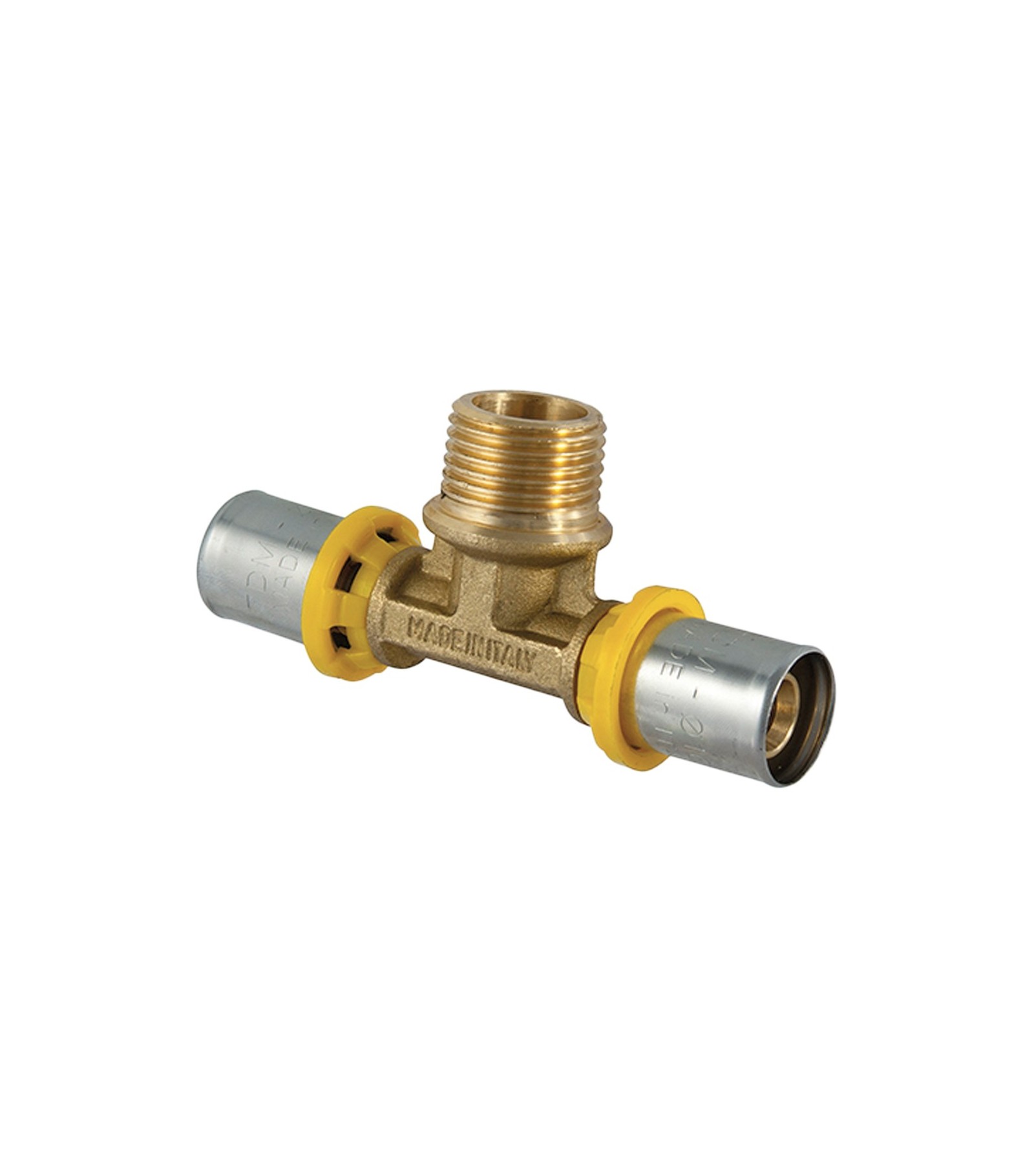TDMTEE MASCHIO A PRESSARE PER TUBO MULTISTRATO ACQUA E GAS TDM D.26 x 1 x D.26 mm