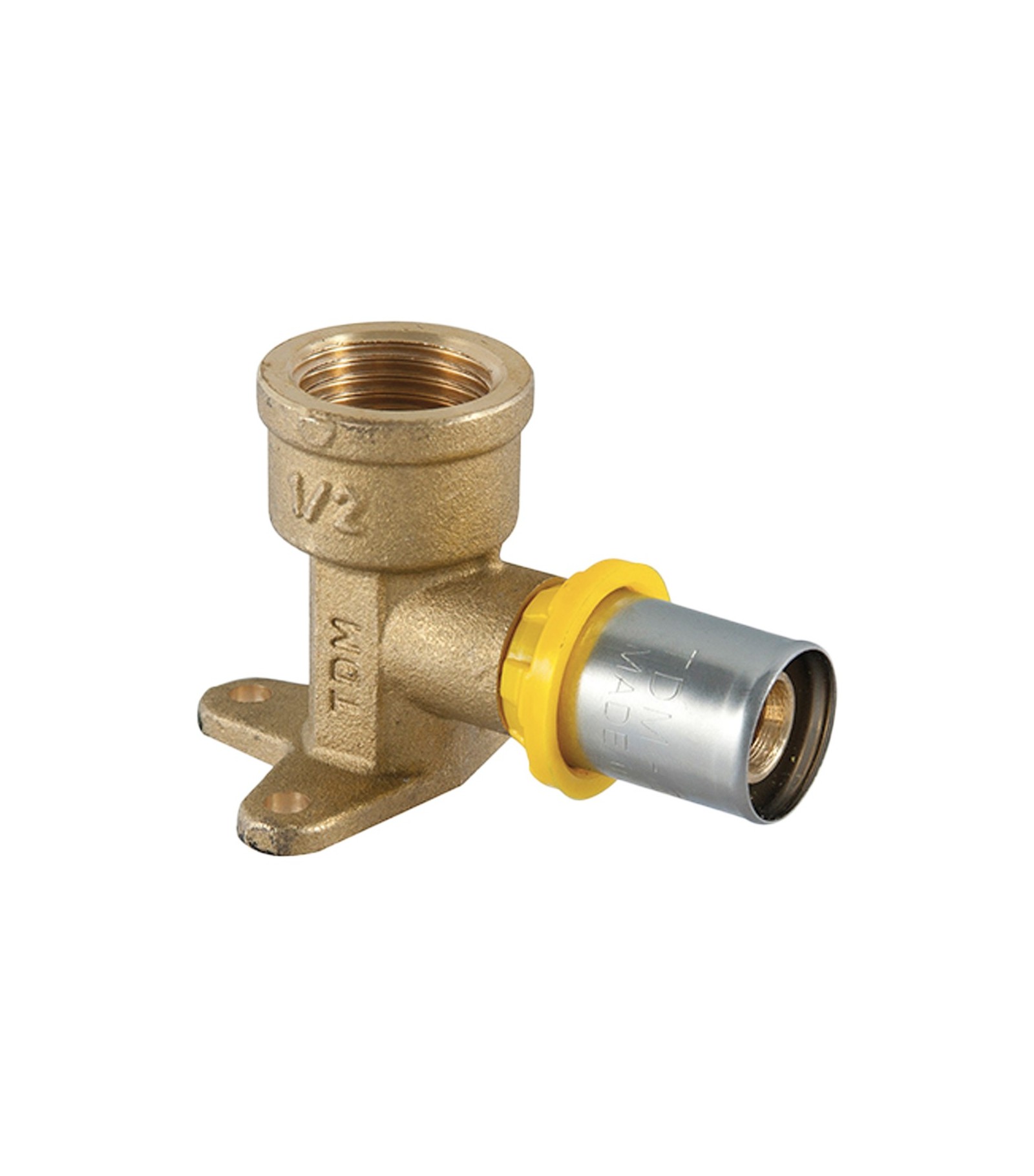 TDMRACCORDO CURVO FEMMINA FLANGIATO A PRESSARE PER TUBO MULTISTRATO ACQUA E GAS TDM 3/4 x D.26 mm