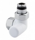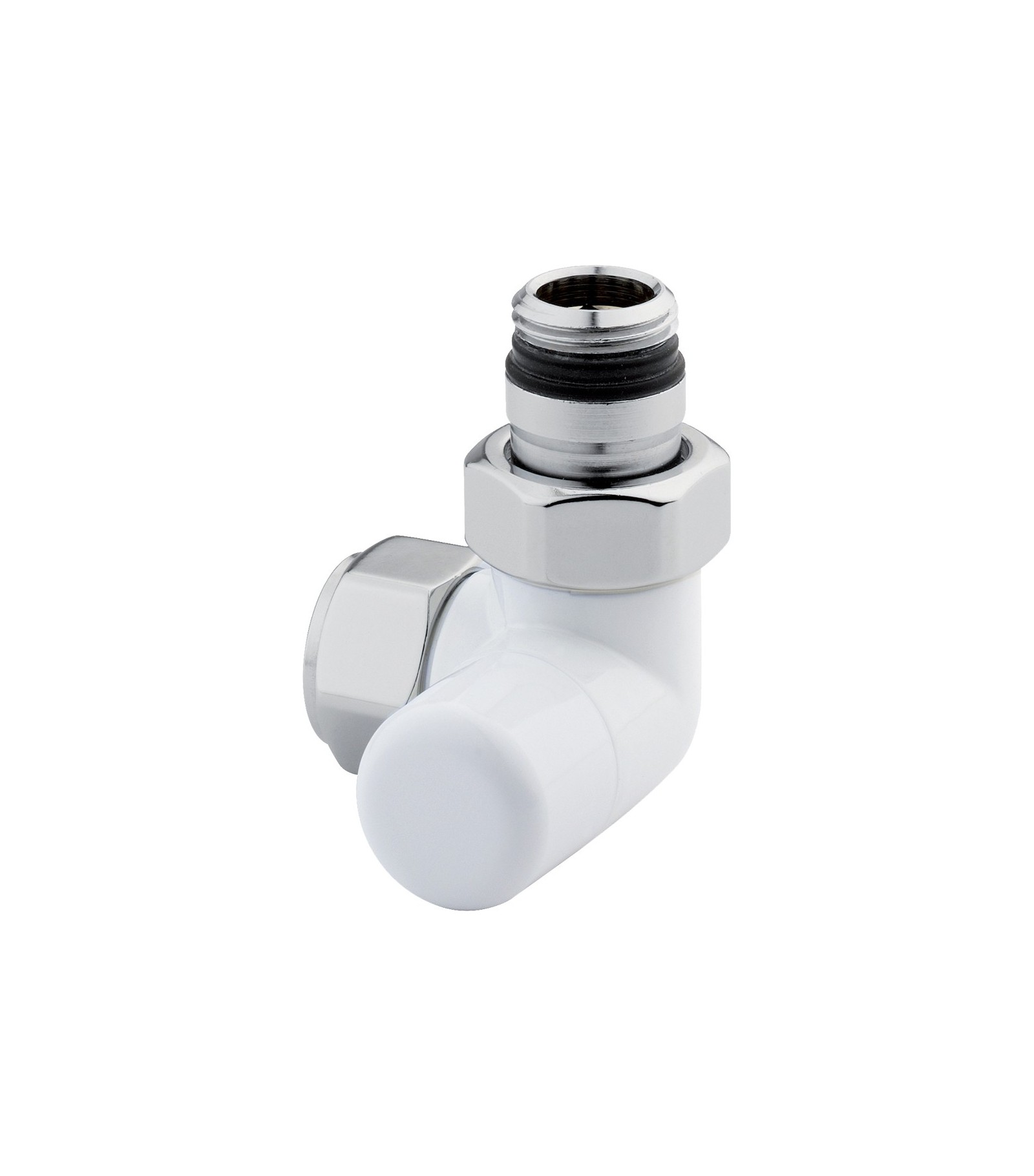 DETENTORE D'ARREDO AD ANGOLO DX HIGH STYLE BIANCO 1/2 - 24x19Completa di calotta, abbinabile con valvola Art. 0766402Rif: 11512CBB