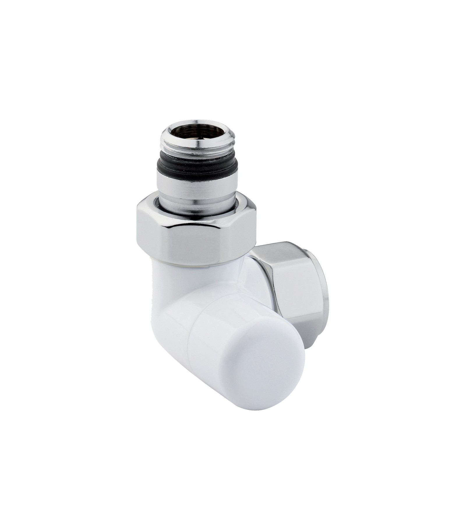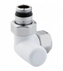 DETENTORE D'ARREDO AD ANGOLO SX HIGH STYLE BIANCO 1/2 - 24x19Completa di calotta, abbinabile con valvola Art. 0766602Rif: 11612CBB