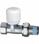 Valvola termostatizzabile diritta cromata. - Attacco per tubo ferro. - Semplice sistema di estrazione volantino. - Perno inox con doppio o-ring di tenuta. - Molla di richiamo rinforzata e otturatore piatto. - Codolo preguarnito con Loctite© Dri-Seal© 5061. Temperatura max di esercizio 95D.C . Pressione max d'esercizio 10 bar.