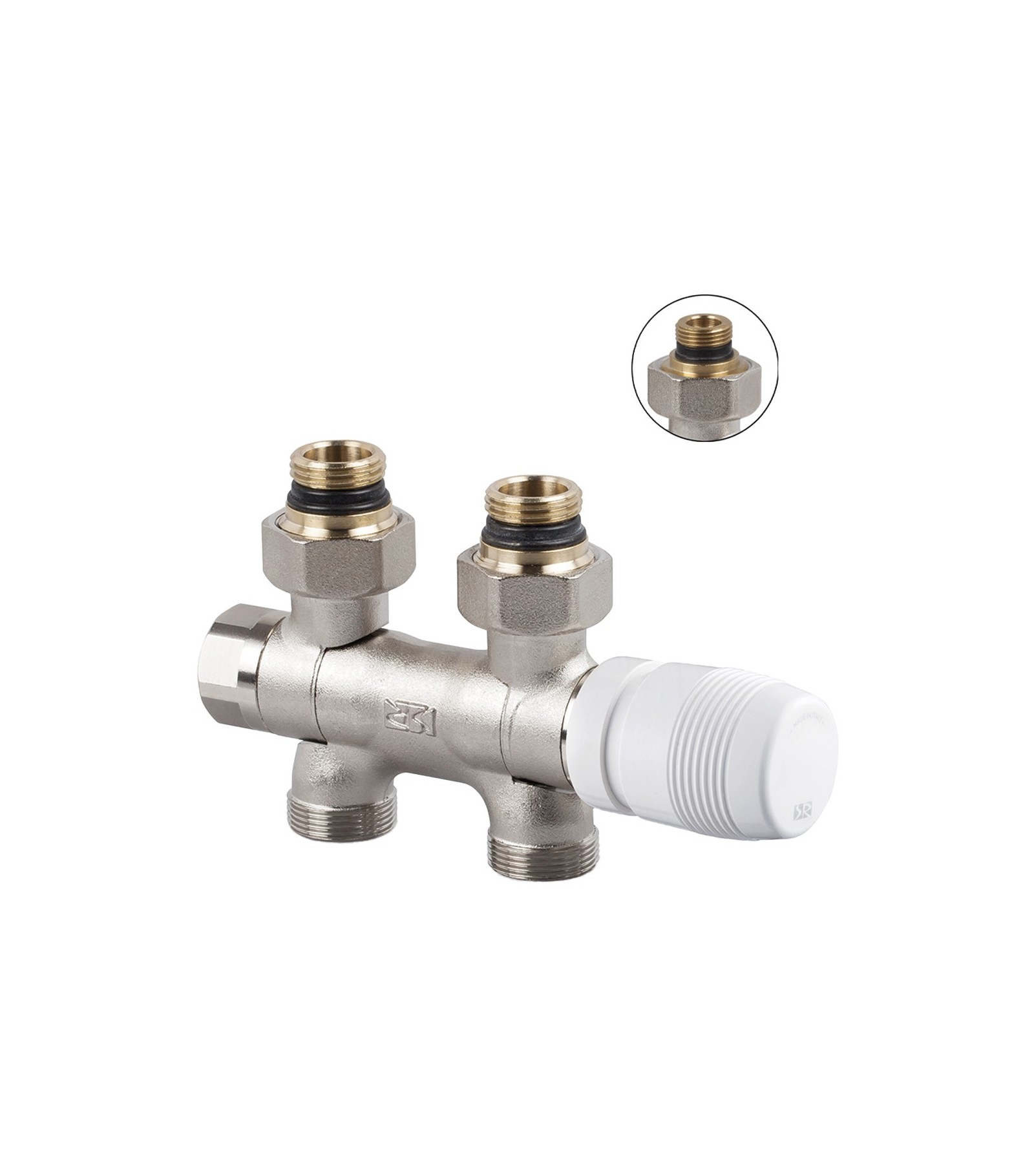 SRGRUPPO VALVOLA TERMOSTATIZZABILE E DETENTORE PER MONO/BITUBO RAME E MULTISTRATO 1/2 - 24x19