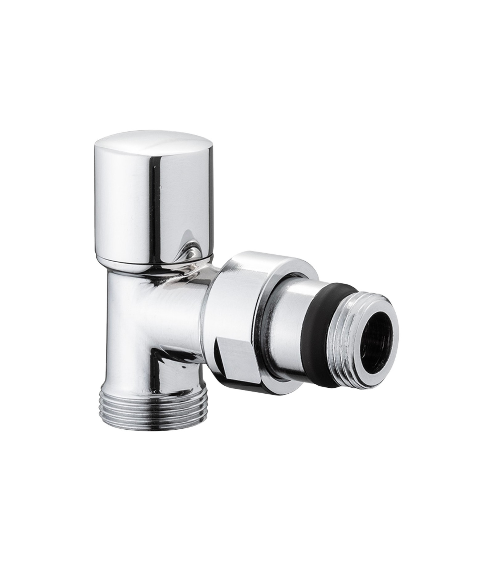 Da abbinare con valvola ns codice 08008. Adattatori ns codice 08020 e 08022. Detentore micrometrico a squadra per il collegamento di tubo rame, multistrato e pe-x. Corredato di bocchettone antisgocciolamento. Finitura cromata lucida.