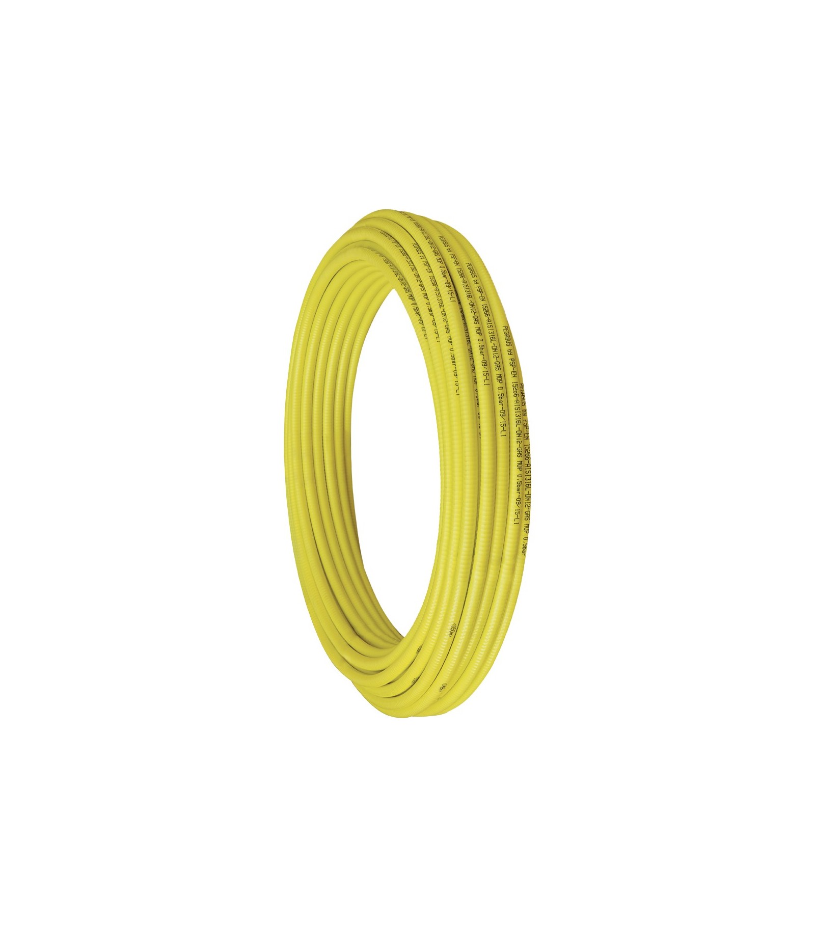 Tubi currogati formabili CSST PEGASUS, a norma UNI EN 15266 e DVGW G 5616, in acciaio inossidabile austenitico 1.4404 (AISI 316L) con rivestimento protettivo esterno di colore giallo per allacciamenti ed impianti gas.