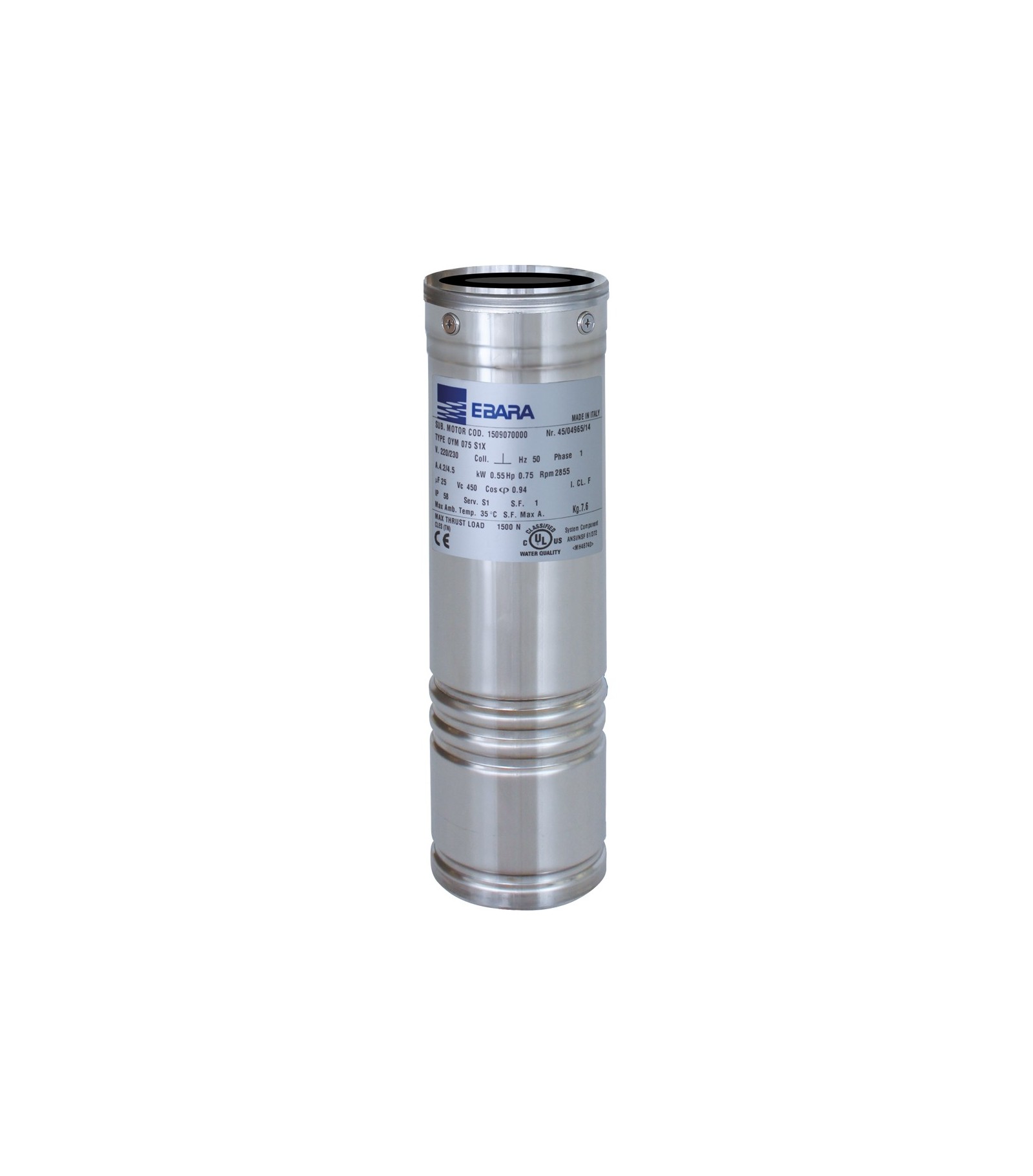 MOTORE SOMMERSO RIAVVOLGIBILE PER POZZI WINNER 4 OYM HP 1.5 S1XMototi 4 in bagno d'olio in acciaio inox AISI 304 con cavo e connettore 4G 1.5 inclusi.Rif: 1509110000