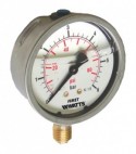 Manometri a molla tubolare Bourdon Serie MG1-INOX, marca Watts, per industria pneumatica, gas e liquidi non viscosi, non aggressivi e che non cristallizzano. Cassa in inox a bagno di glicerina DN 63 mm, attacco radiale.
