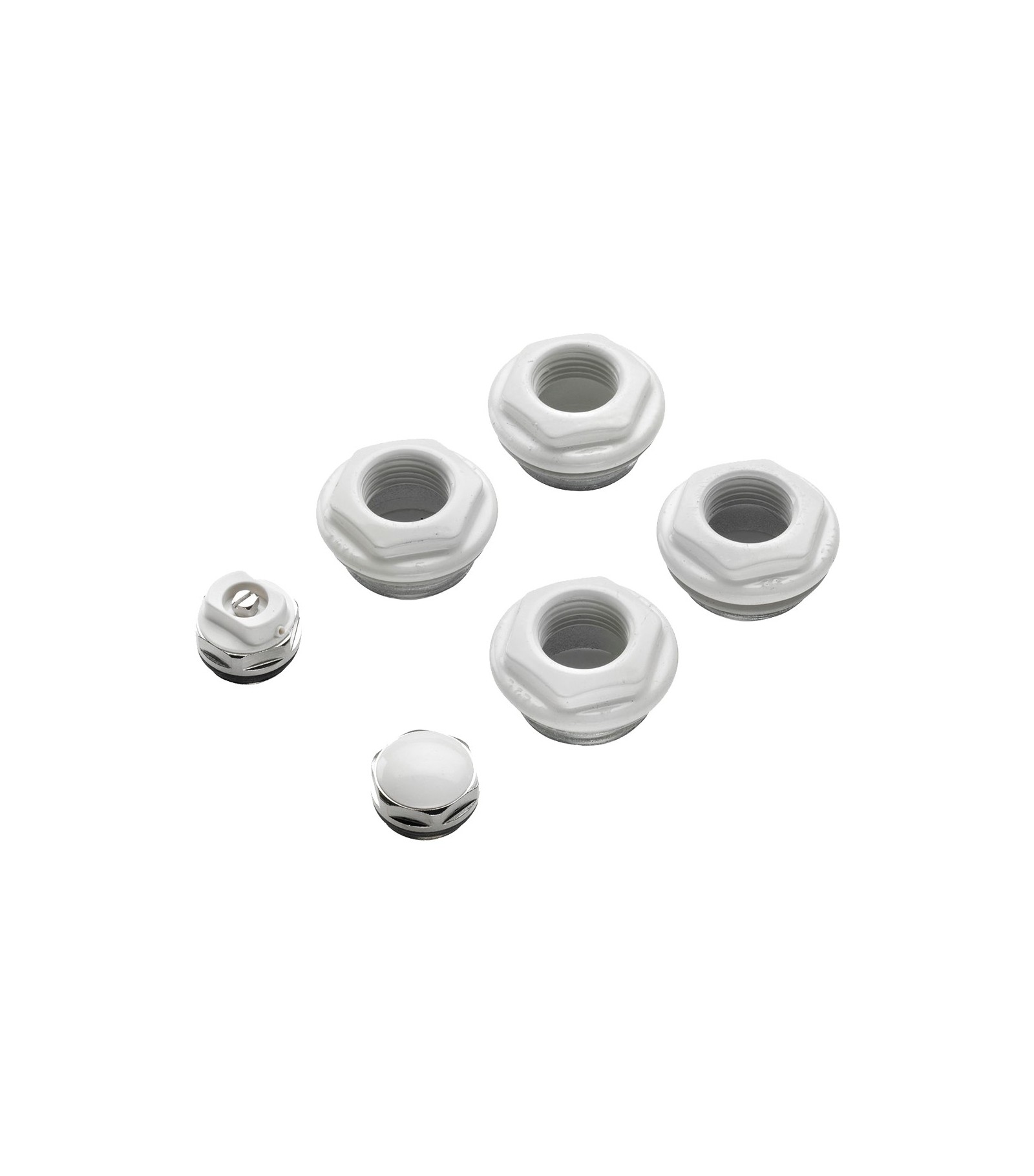 - Nr. 1 tappo in ottone cromato con cappuccio bianco e guarnizione O-RING montata,