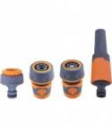 KIT LANCIA A SPRUZZO 3/4 CARDINALE PROFESSIONAL Set 4 pezziComposto da: lancia a spruzzo, presa rubinetto 3/4F con riduttore 1/2, raccordo rapido e raccordo rapido Acquastop. Confezione blister.