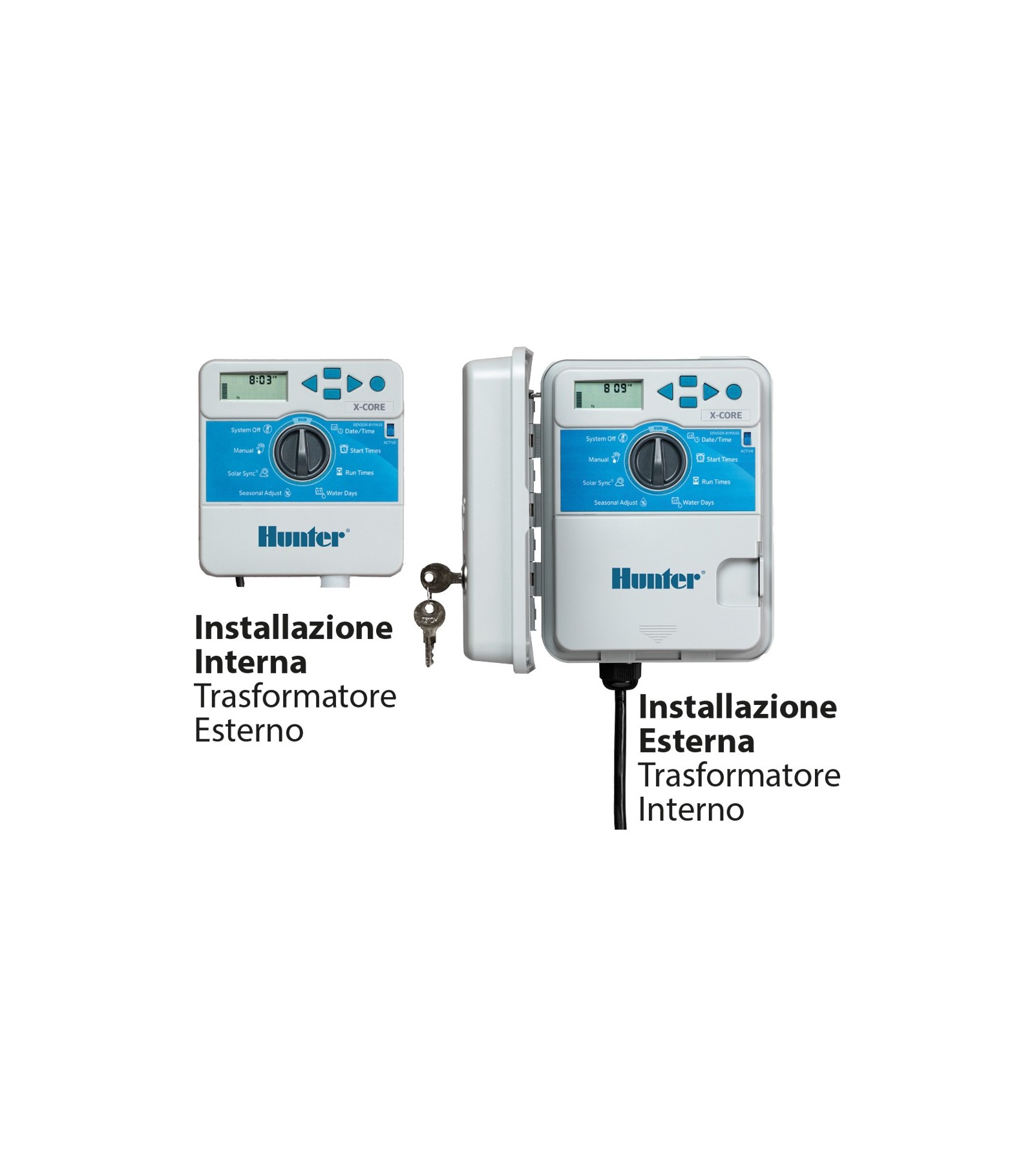 Per uso interno con trasformatore interno, è la soluzione perfetta per le applicazioni residenziali e piccole zone commerciali, ricco di funzioni è di semplice funzionamento e utilizzo con una programmazione intuitiva. Armadietto in plastica con chiave di chiusura. 3 programmi indipendenti, 4 partenze giornaliere per programma per un massimo di 12 avvii giornalieri con tempi di irrigazione: da 0 minuti a 4 ore con incrementi di 1 minuto per stazione. Programmazione giornaliera: per giorni della settimana, o per giorni pari/dispari con calendario di 365 giorni, per intervallo di irrigazione. Sensore programmabile per stazione. Ritardo pioggia programmabile da 1 a 7 giorni, ritardo di irrigazione programmabile, interruttore bypass sensore pioggia. Partenza e avanzamento manuali con un solo pulsante. Possibilità, in irrigazione tramite intervallo, di escludere sempre un determinato giorno della settimana. Calcolatore del tempo di funzionamento totale. Batteria al litio sostituibile da 3V (inclusa) per programmazione senza corrente e mantenimento dell'orario. Non necessaria per il mantenimento del programma. Memoria Easy Retrive: memorizza in un backup un programma completo e i dati di configurazione. Ingresso trasformatore 240 Vca, uscita trasformatore (24 Vca): 1 A, uscita stazione (24 Vca): 0,56 A. Funzionamento simultaneo stazioni: 5 valvole. Valvola principale/pompa. Ingressi sensore: 1. Temperatura di funzionamento: da -18D. a 66D. C.