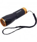 In alluminio. Con focus regolabile. Illuminazione a CREE Led Watt 5. Lumen: 150. Autonomia: ore 2. Profondit Mt. 150. Alimentata con 3 ministilo AAA Duracell incluse. Grado di protezione: IPX4.