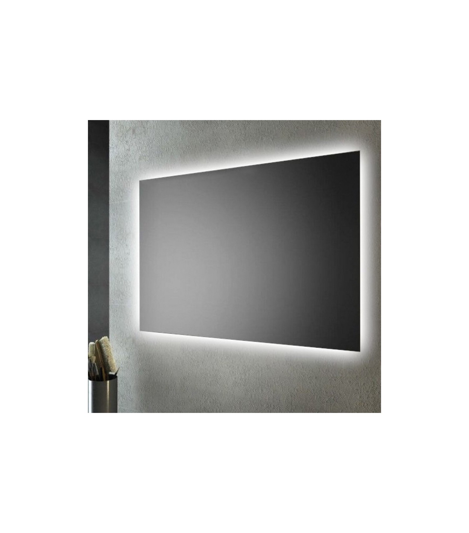 SPECCHIO RETTANGOLARE FILO LUCIDO CON FASCIA PERIMETRALE A LED RETROILLUMINANTE L.100 x H.70 cmA norma CE. Reversibile. Fornito in cartone singolo. Luce 4000K Bianca Naturale.