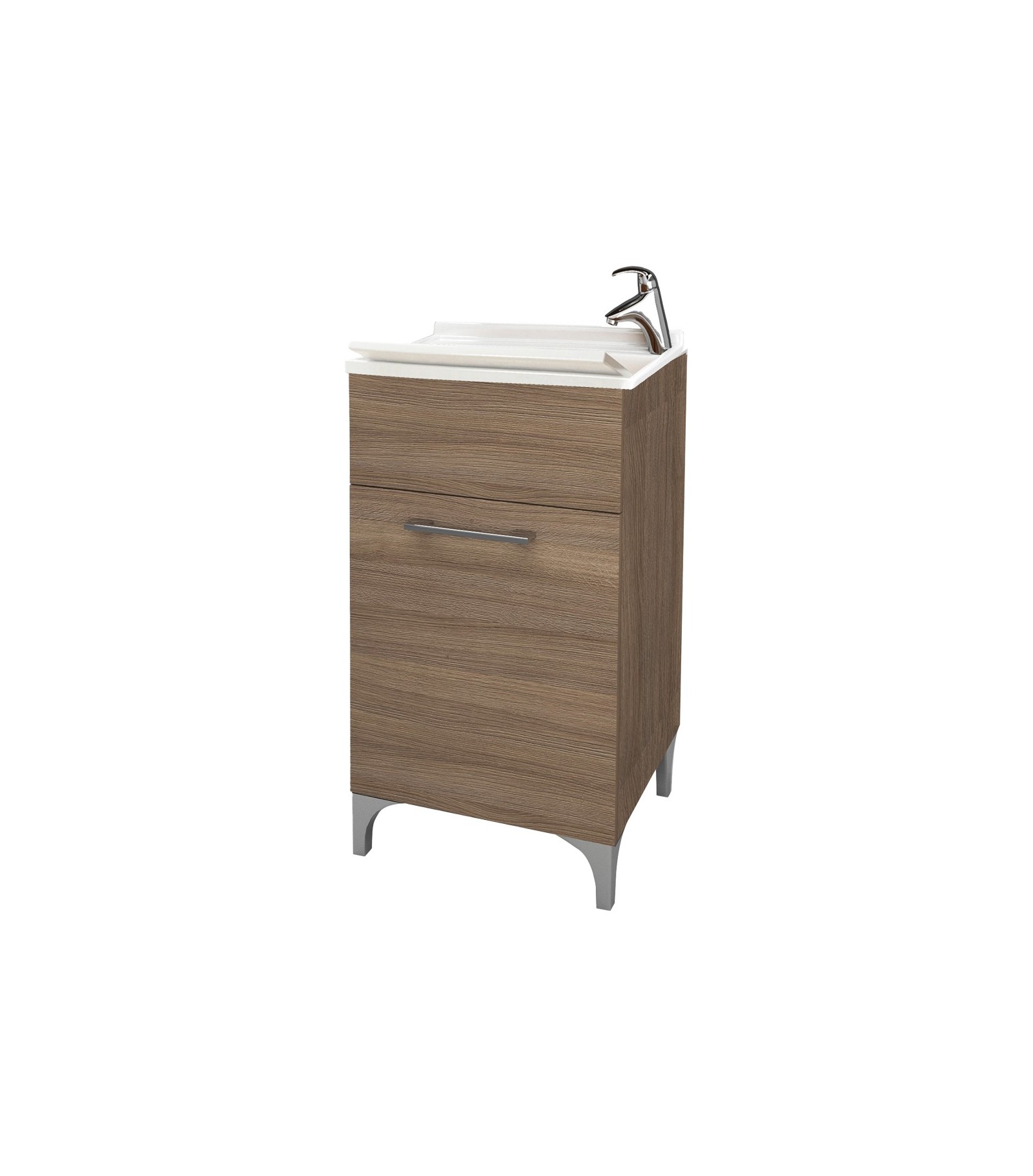 MOBILE LAVATOIO AD 1 ANTA ROVERE FUMO L.45 x P.50 x H.83 cmBordi in ABS, piedini regolabili cromati, maniglie in ABS cromate. Lavabo in plastica duraRif: 4297