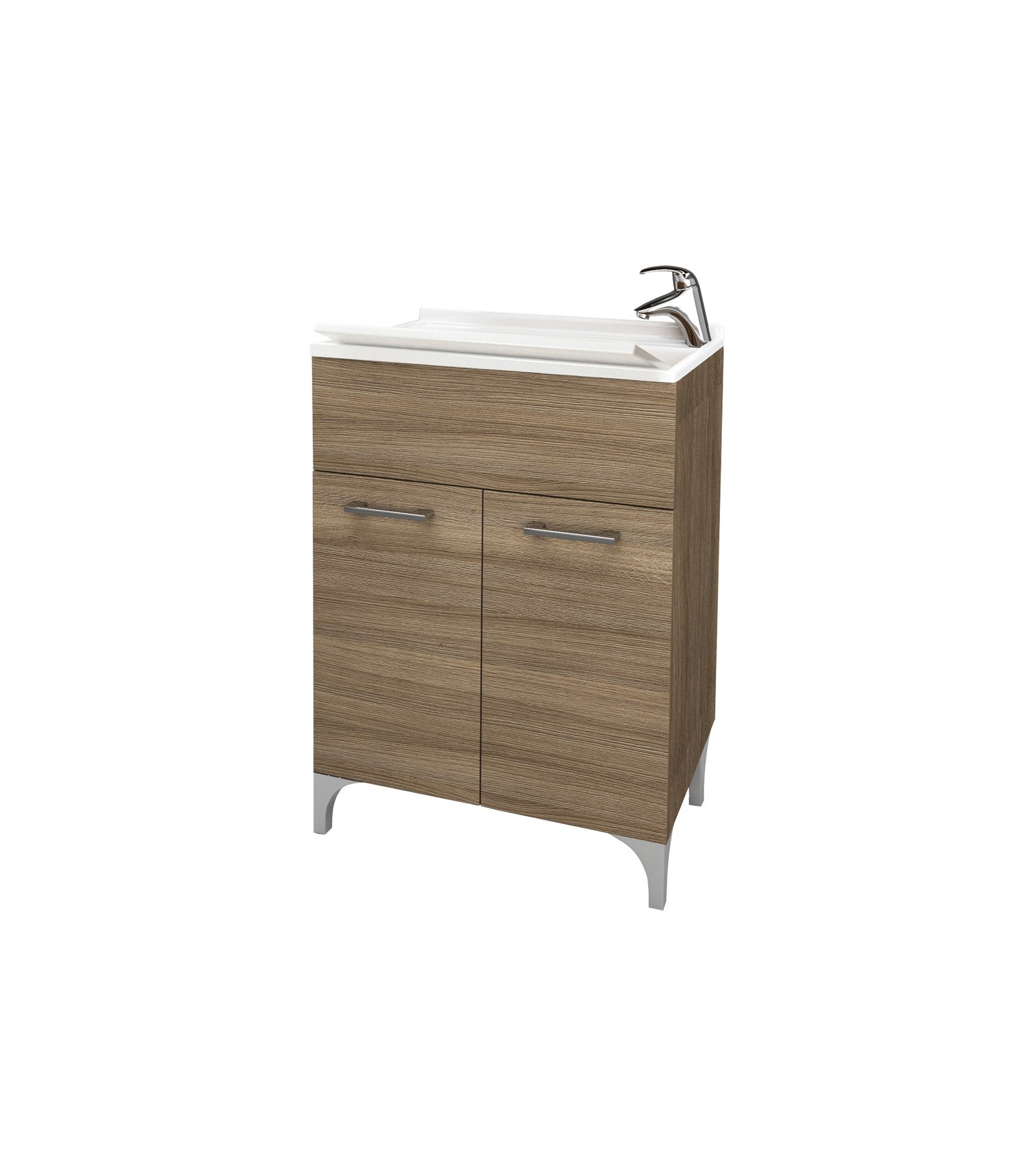 MOBILE LAVATOIO A 2 ANTE ROVERE FUMO L.60 x P.50 x H.83 cmBordi in ABS, piedini regolabili cromati, maniglie in ABS cromate. Lavabo in plastica duraRif: 4299