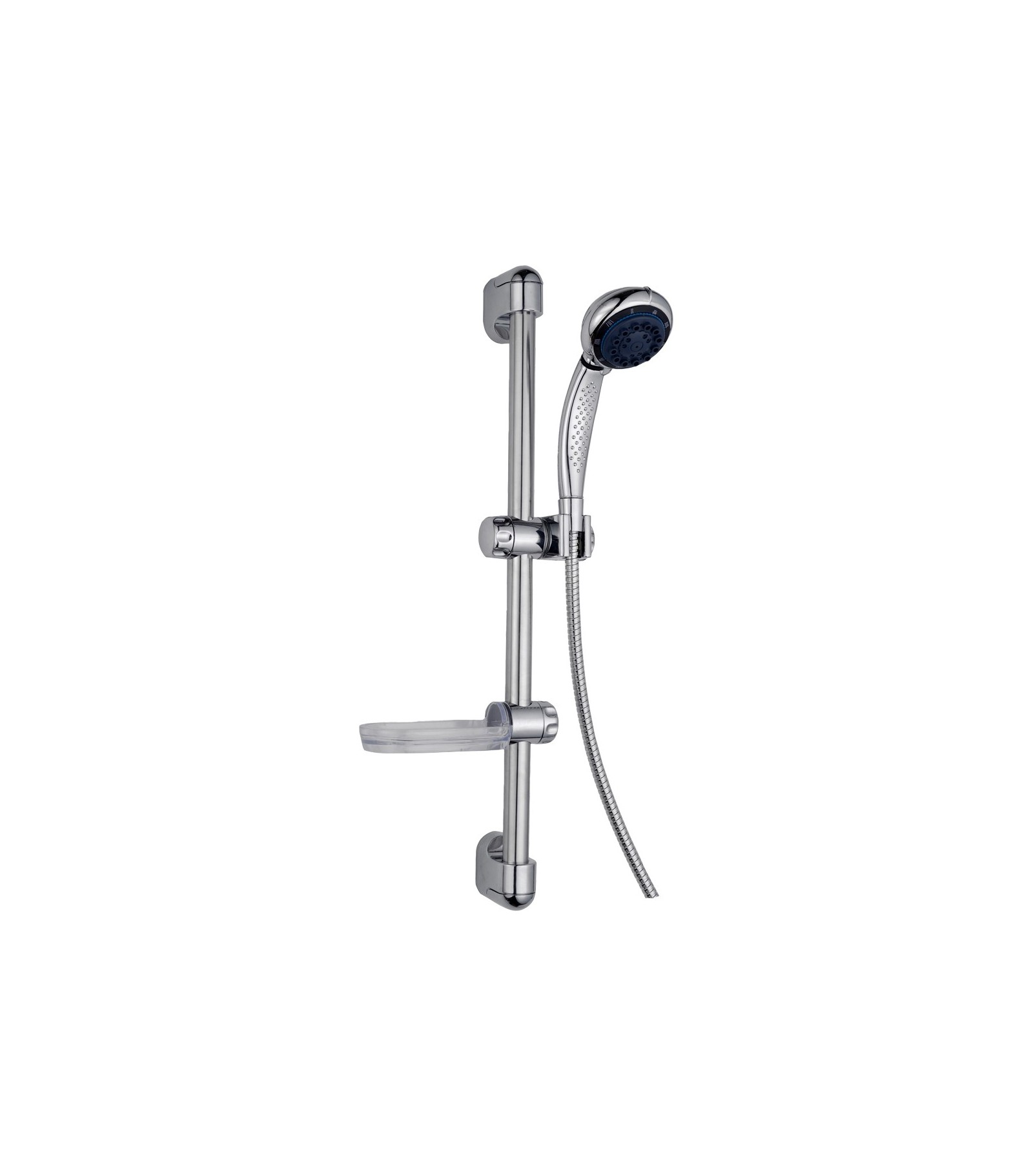 SET SALISCENDI DOCCIA 8 GETTI GINEVRA CromoCompleto di:- Doccetta in ABS 8 getti. 85 mm, - Portasapone trasparente, - Asta 25 lunghezza 60 cm. Fornito in scatola