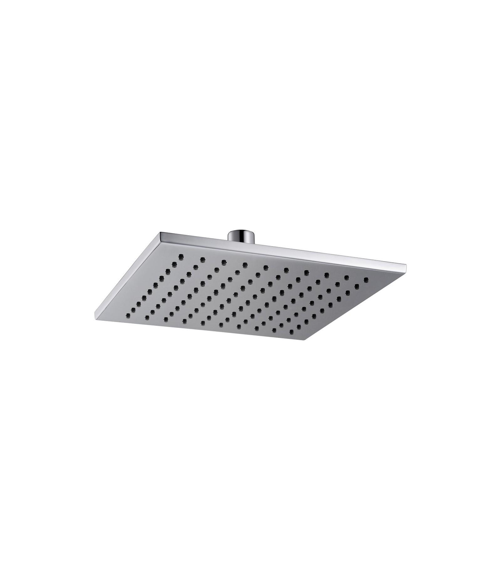 SOFFIONE DOCCIA MONOGETTO SATURNO IN OTTONE QUADRO 200x200 mm - CromoSoffione doccia Quadro, 200 x 200 x 8 mm, da 100 Fori, Anticalcare, Ispezionabile, 1 Getto Fisso, Ugelli facili da pulire. DM 174. Portata: 22 l/m.