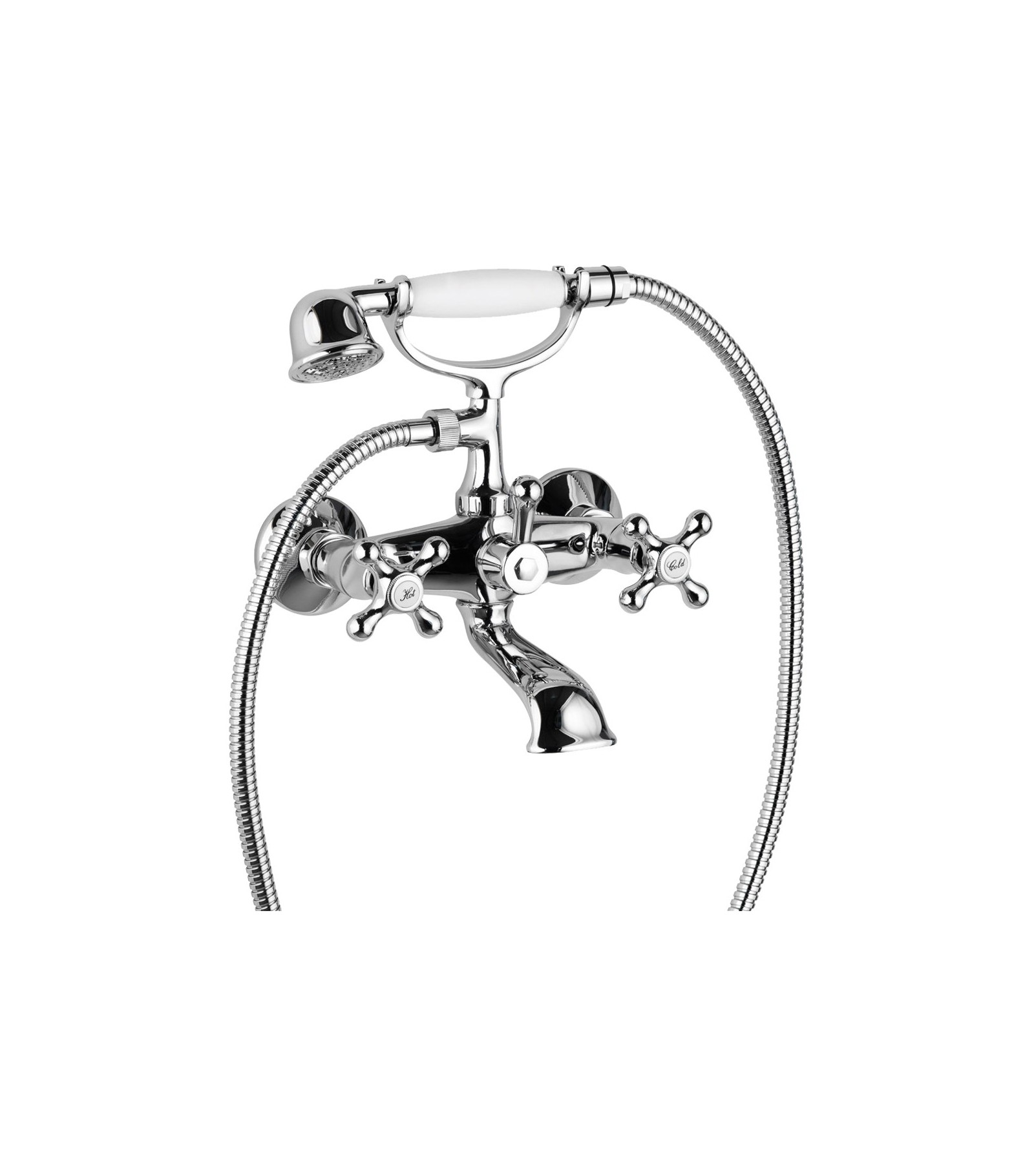 Miscelatore Vasca, installazione esterna dalla parete. Stile Retr•. Fornito completo di Doccetta Old Style e Flessibile da 1/2. Per renderlo a chiusura ceramicata ordinare nostro codice: 0423202