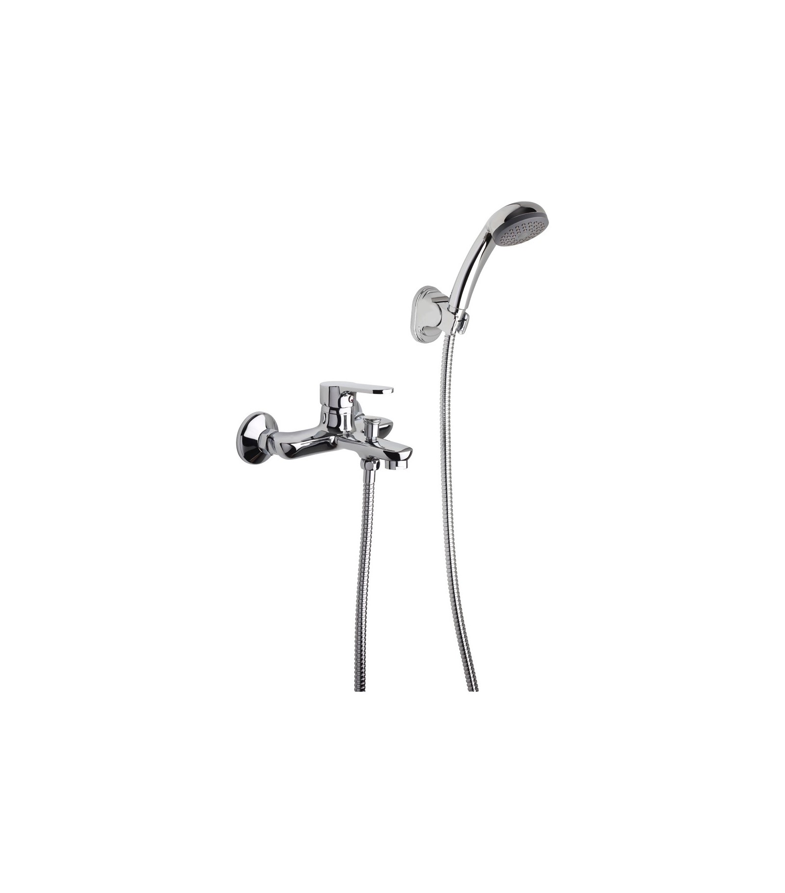 MISCELATORE VASCA ESTERNO PRIUS Cromo + Set docciaFornito completo di: - Supporto a muro per doccetta, - Doccetta, - Flessibile doccia. Finitura: Cromo Articolo 100% Made in ItalyRif: 7900