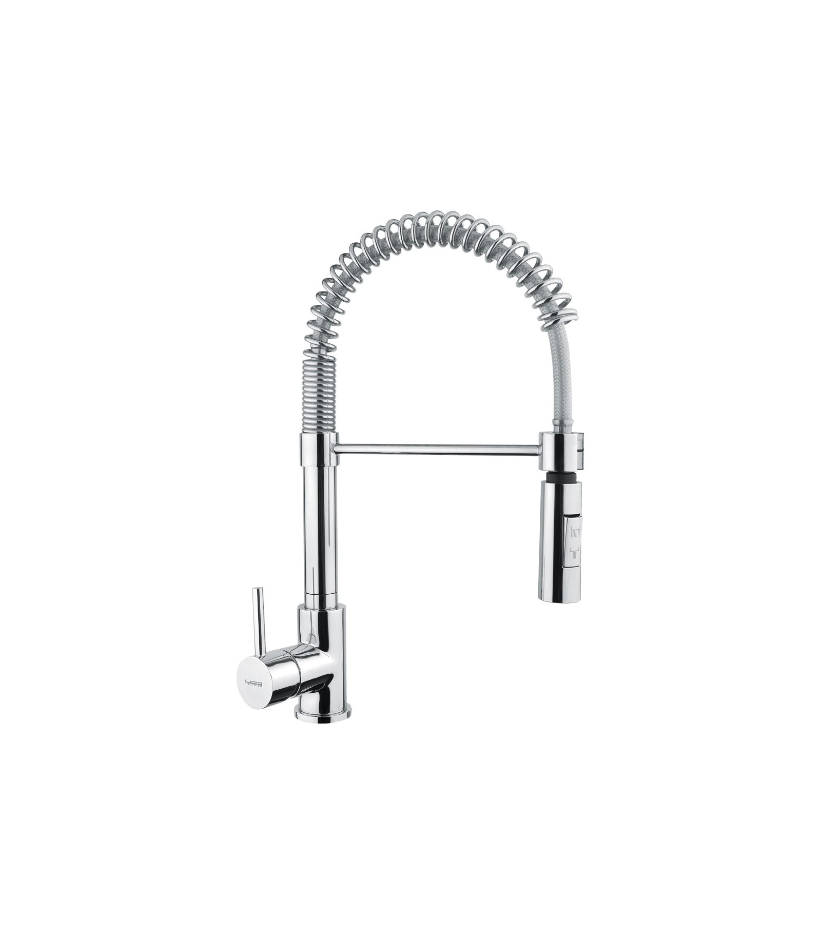 La caratteristica principale di questo tipo di miscelatore è la presenza di una molla all'interno del collo del rubinetto. Questa molla consente al rubinetto di essere flessibile e di tornare automaticamente alla sua posizione originale una volta rilasciato. La flessibilità del rubinetto consente di pulire il lavello in modo pi— efficace, facilitando l'accesso a tutte le aree. Offre la doppia funzione di spruzzo o doccetta, che pu• essere utile per il lavaggio di piatti e utensili in modo pi— efficiente. Cartuccia di ricambio nostro codice 0420702