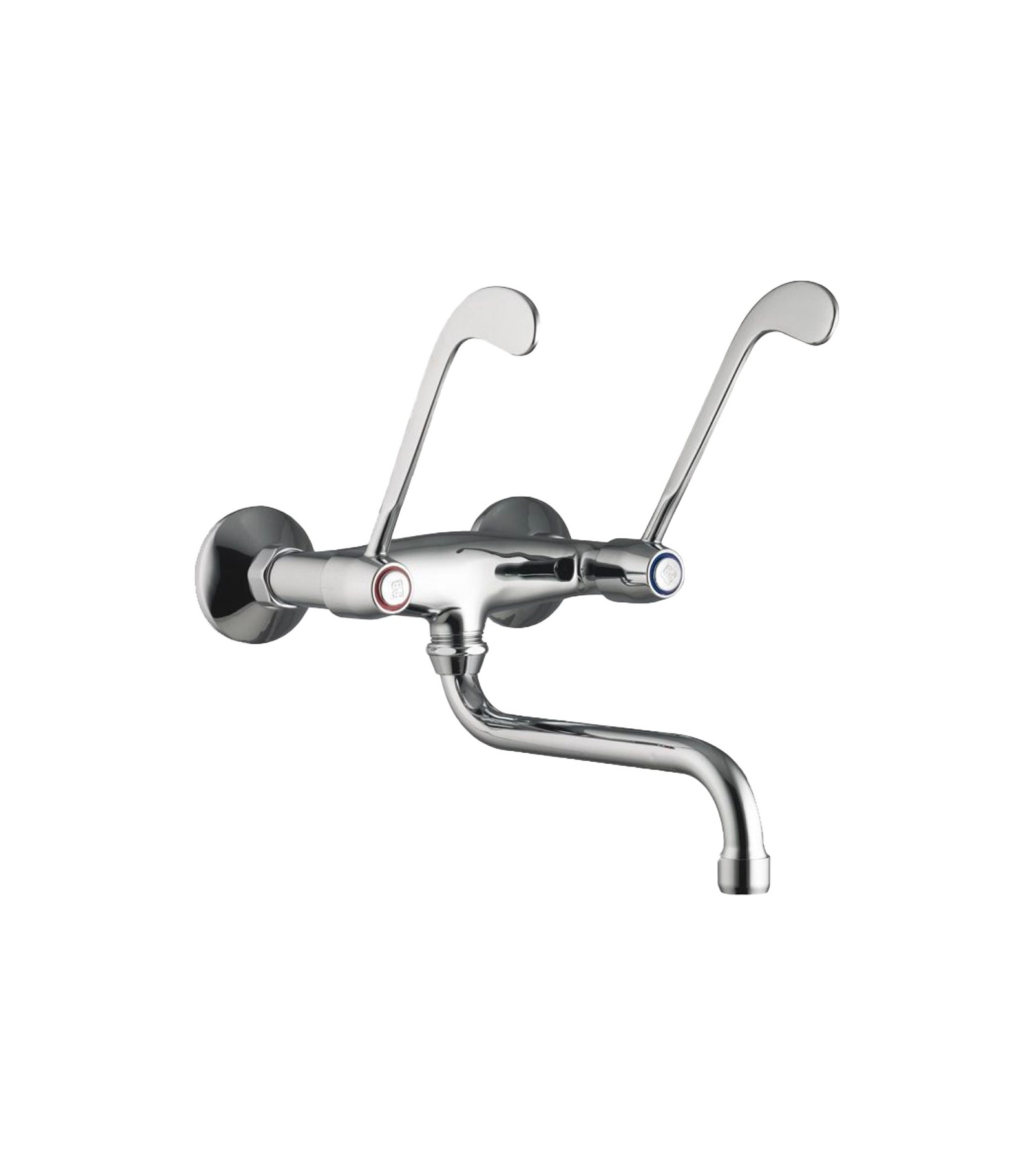 MISCELATORE LAVELLO A MURO CON DOPPIA LEVA CLINICA Cromo - 1/2