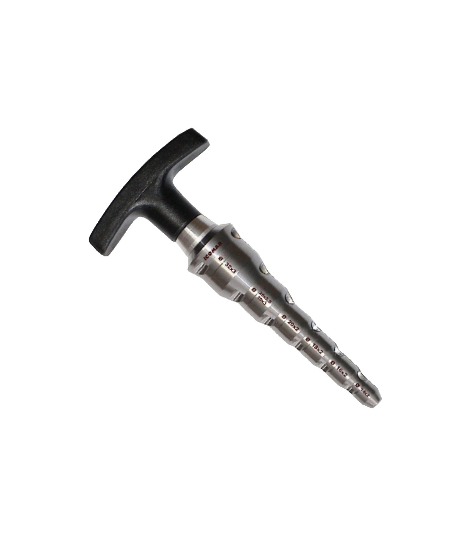SBAVATORE CALIBRATORE IN ALLUMINIO PER TUBO MULTISTRATO MultimisuraRealizzato in Alluminio a sezione cilindrica con tre taglienti sbavatori per un lavoro di precisione. Misure: 14-16-18-20 x (2) mm / 25 x (2,5) mm / 26-32 x (3) mm.