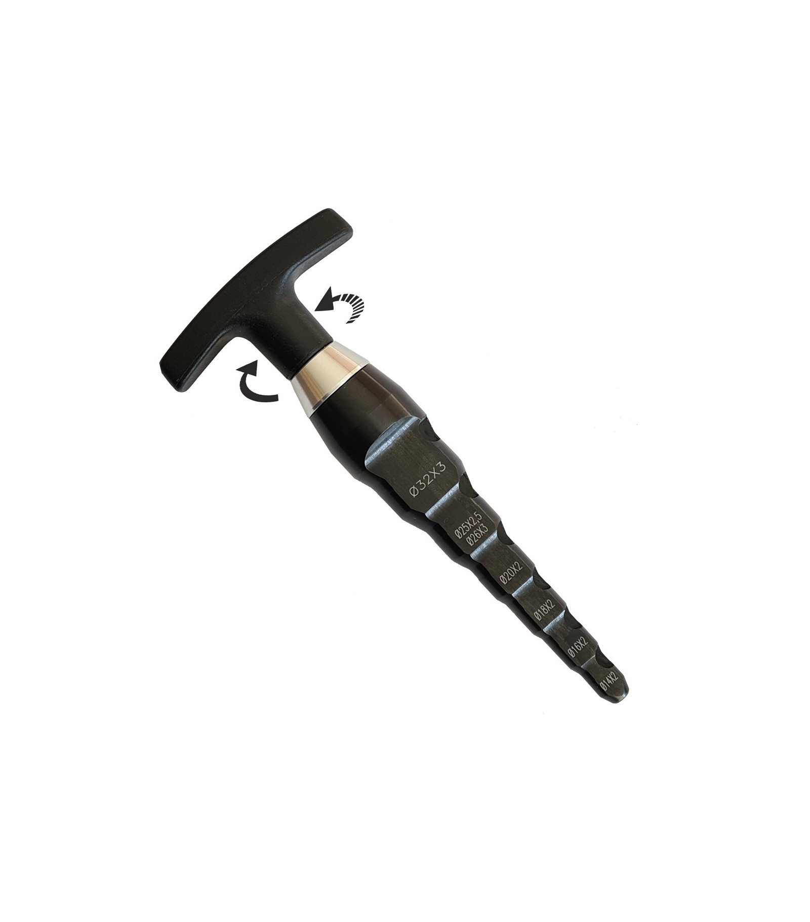 Adatto per sbavare la parte interna del tubo multistrato e 4 misure per ricalibrare il tubo dopo il taglio.