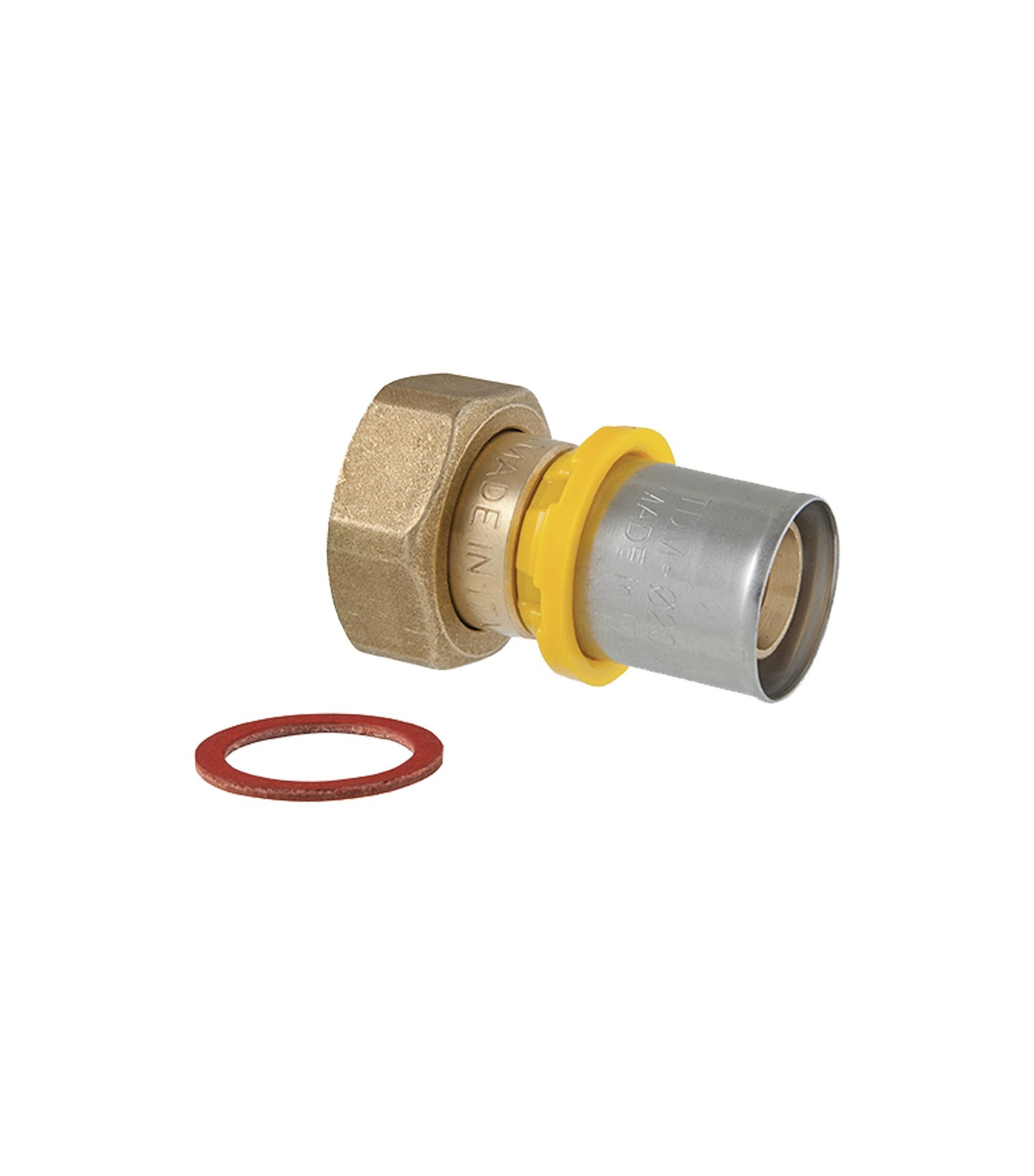 ADATTATORE A SEDE PIANA CON DADO GIREVOLE A PRESSARE PER TUBO MULTISTRATO ACQUA E GAS TDM 1 x 32 mm