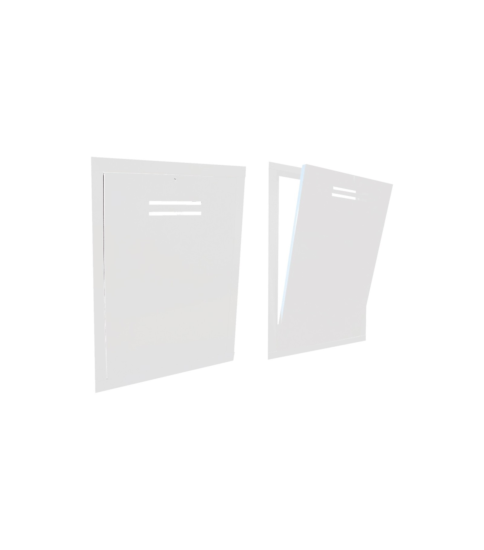 SPORTELLO COPRI COLLETTORI CON PORTA A PRESSIONE IN ACCIAIO ZINCATO 700 x 400 x 20 mmMateriale: acciaio zincato, verniciato con polveri termoindurenti. Colore: Bianco RAL 9010.