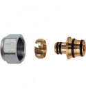 Completo di : - Adattatore per tubo multistrato. - Anello stringitubo in ottone. - Calotta cromata filetto 24x19. Kit per tubi multistrato adattabile a tutti gli articoli con attacco intercambiabile. Composto da: adattatore in ottone per tubo multistrato con 2 o-ring di tenuta nella parte anteriore e posteriore e un dischetto anticonduttività, anello stringi tubo in ottone e calotta in ottone cromata con filetto 24x19.