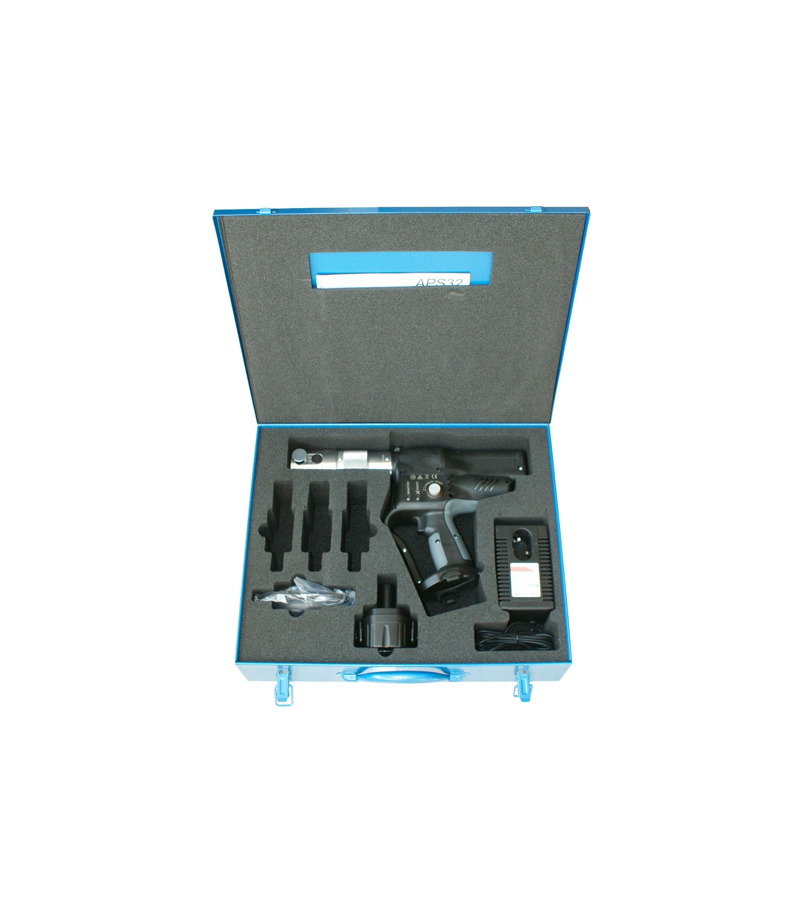 La fornitura comprende: cassetta metallica con pressatrice con 1 batteria, caricatore, cavo USB e CD software di controllo.