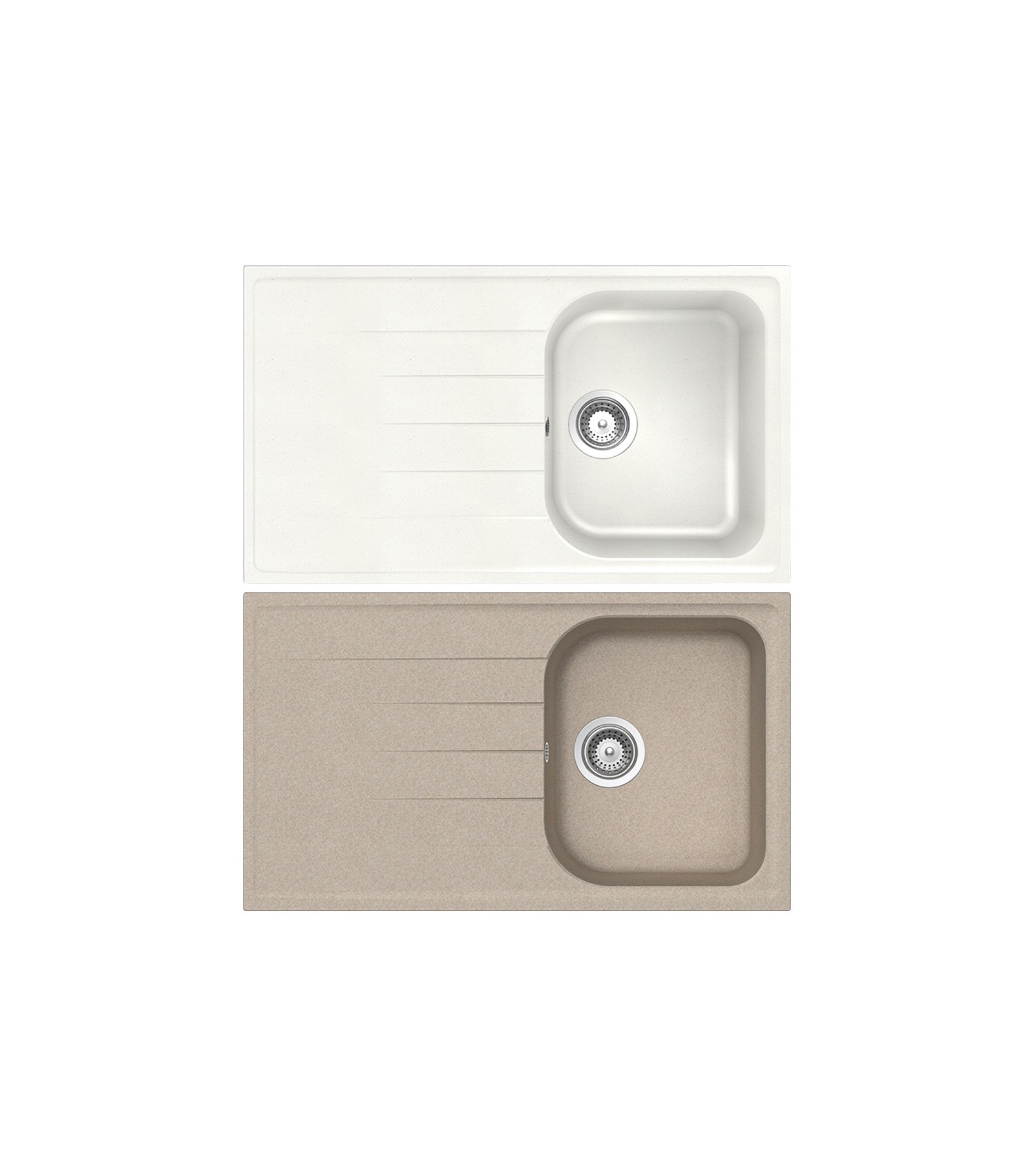 LAVELLO SINTETICO 1 VASCA CON GOCCIOLATOIO INCASSO LITHOS Bianco Alpina 07 - 86x50 cm