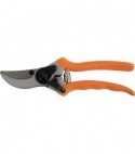 Forbici da potatura ergonomiche con testa inclinata e manici in acciaio rivestiti in PVC. Tensione regolabile, lama e controlama in acciaio.