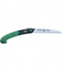 Lama in acciaio cromato, rettificata concava per limitare l'attrito. Denti passo Mm. 4 con triplice affilatura e temprati ad impulsi. A serramanico con chiusura a leva. Manico ergonomico power grip. Ideale per il taglio sotto l'altezza della spalla.