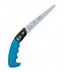 Lama in acciaio cromato, rettificata concava per limitare l'attrito. Denti passo Mm. 3 con triplice affilatura, temprati ad impulsi. Manico ergonomico con power grip a pistola. Completa di fondina. Per potature di precisione di rami inferiori ai Cm. 10 di diametro. Ideali per il taglio sotto l'altezza della spalla.