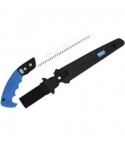 Lama in acciaio cromato, rettificata concava per limitare l'attrito. Denti passo Mm. 3 con triplice affilatura, temprati ad impulsi. Manico ergonomico con power grip a pistola. Completa di fondina. Per potature di precisione di rami inferiori ai Cm. 10 di diametro. Ideali per il taglio sotto l'altezza della spalla.