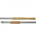 In alluminio e legno. Il manico composto da una doppia impugnatura in legno, la parte terminale fissa, quella centrale scorrevole.