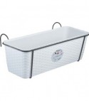 In polipropilene con riserva d'acqua. Stile rattan. Completa di supporto in metallo per balcone di colore antracite. Capacit Lt. 9,2.