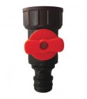 Con rubinetto a sfera con regolatore di flusso. Con filettatura femmina e innesto rapido al portagomma.
