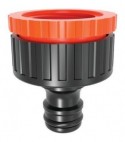 Con filettatura femmina avvitabile al rubinetto con riduzione. Innesto rapido al portagomma.