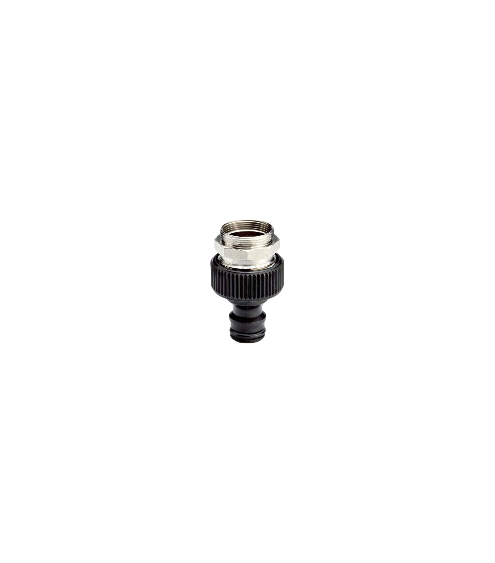 Con raccordo in ottone filettato 3/4 GAS con filettatura esterna ed interna. Innesto rapido al portagomma.