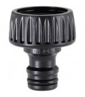 Filettatura femmina avvitabile al rubinetto con riduzione. Superficie prensile. Innesto rapido al portagomma.