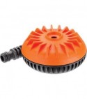Compatto per un facile spostamento sul prato. Irrigatore statico a pioggia finemente polverizzata per un area circolare. Area massima irrigata Mq. 63. Pressione di esercizio da Bar 1 a 4.