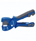 Ideale per tubi multistrato, 4 rulli con cuscinetti per ruotare il tubo e tagliare senza sforzo, lama parallela in PTFE, sistema integrato per il taglio e la sguainatura del tubo corrugato, fermo anti rottura della lama, molla di richiamo.