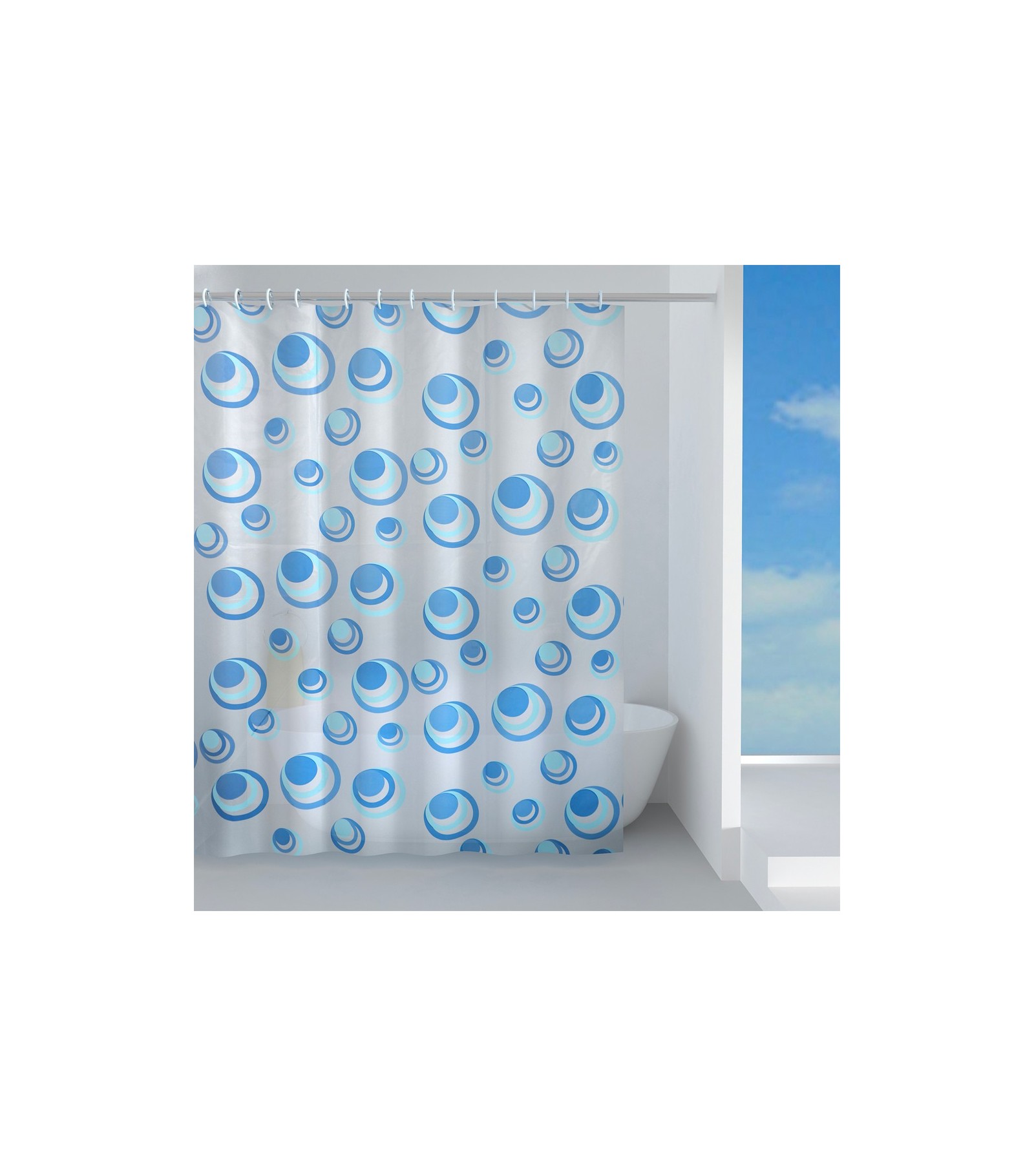 Il PEVA e' un materiale ecologico riciclabile senza dispersione di sostanze tossiche nell'ambiente, completamente inodore, spessore consistente per evitare che la tenda aderisca al corpo durante la doccia. La tenda è fornita completa di anelli.