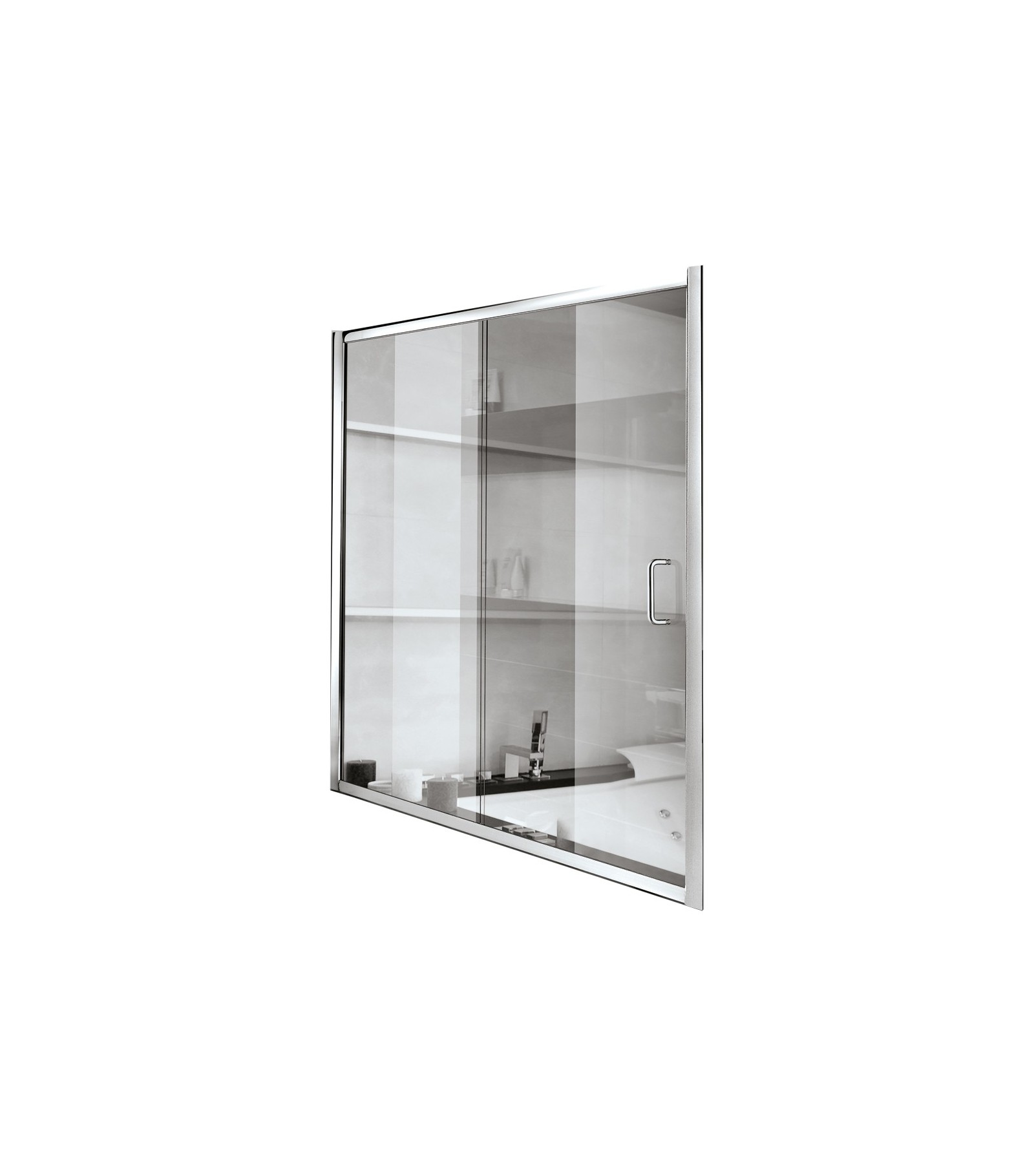 PARETE SOPRAVASCA A 1 ANTA SCORREVOLE E 1 FISSA VETRO TRASPARENTE Sp.4 mm P.CROMO 150-154 - Ap.50 cm