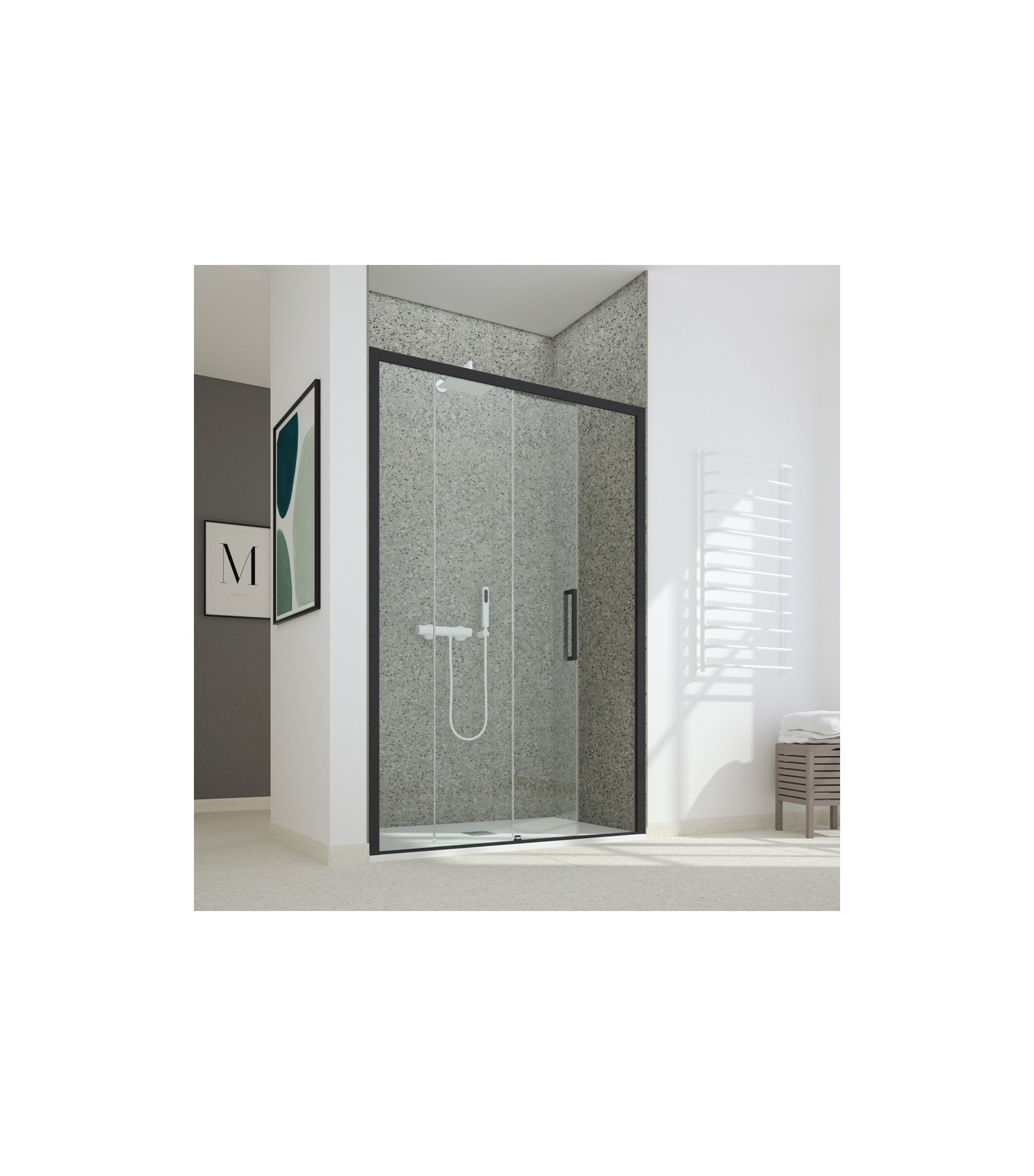 PORTA DOCCIA A UN ANTA FISSA E UNA SCORREVOLE ESSENCE NERO OPACO TRASPARENTE 95,5-100 Ap.38 Dx