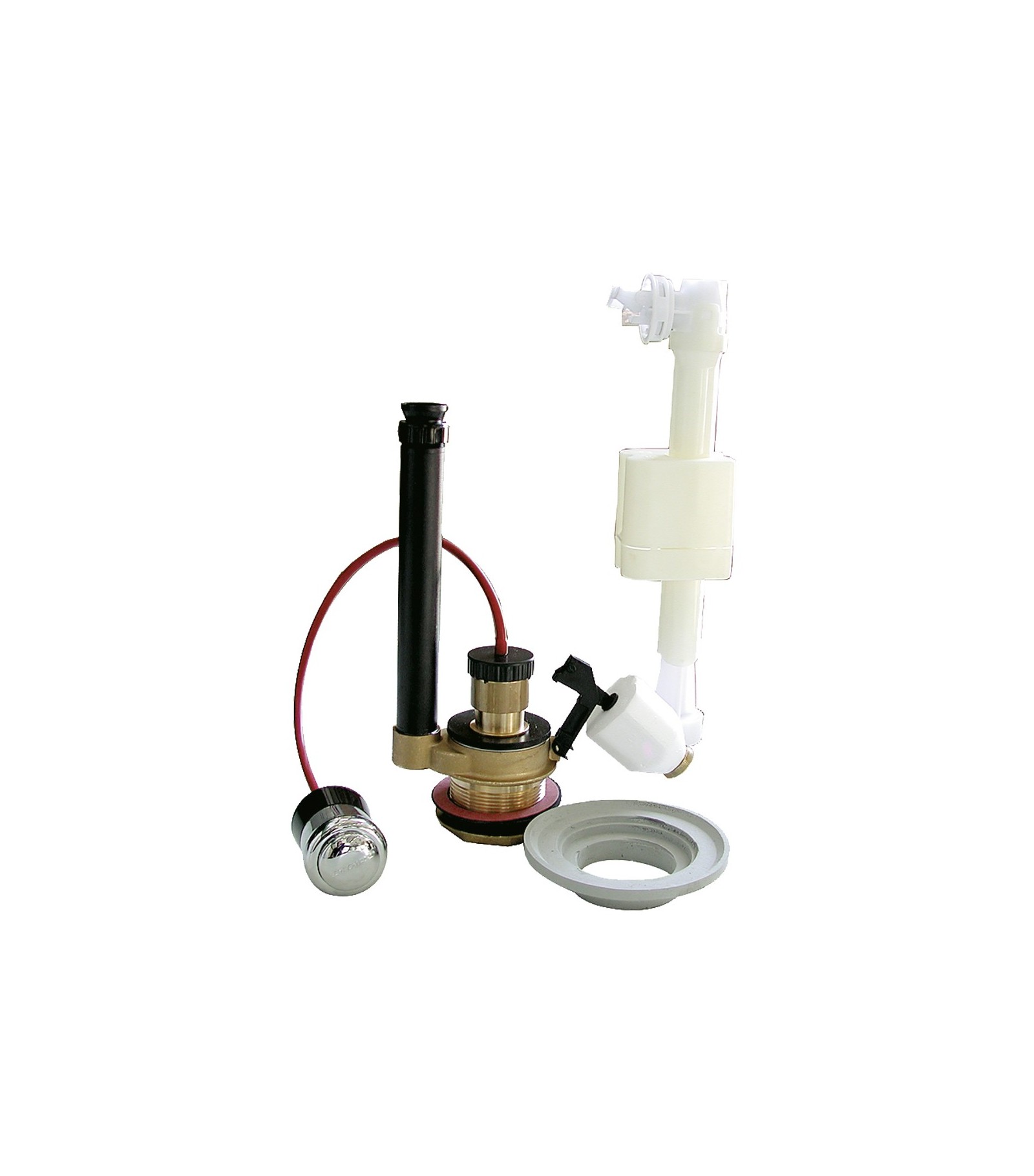 MECCANISMO DI SCARICO CON PULSANTE, KIT MONOBLOCCO E GALLEGGIANTE SILENT INFERIORE 3/8 - Ottone